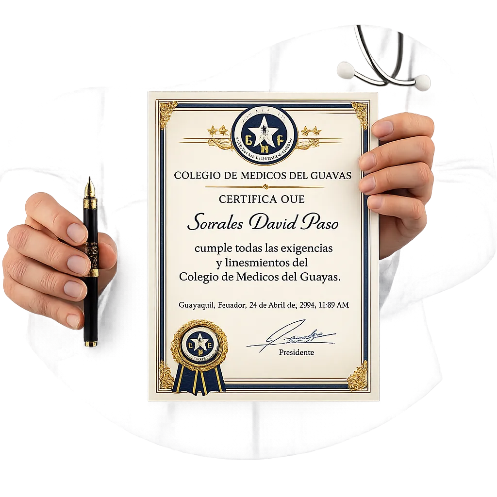 ◦ Certificación oficial del Colegio de Médicos del Guayas (CMG).